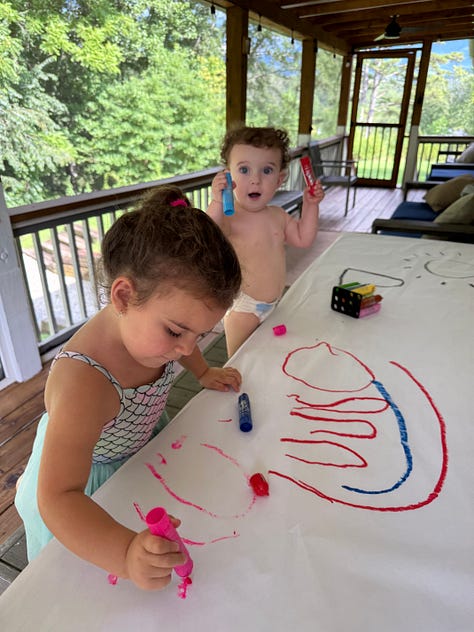 We made so many core memories this summer. I could literally feel them turning into a fluorescent little amber orb (definitely joyful) and being filed off into whatever islands exist in our consciousness. Much of that is credited to the influx of friend time we had, which included hanging out with seasoned parents. This is its own special gift because it taught me so much. Knowing when to tap out is something I observed many experienced parents fully get. They have no hesitation to call it and swiftly change the scenery.