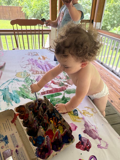 Hereās how it looks: We try to go out somewhere in the morning, come back and nap / eat then head out in the afternoon. Maybe. Sometimes that second thing can be an activity at home with a simple spin on it to make it slightly more enticing.